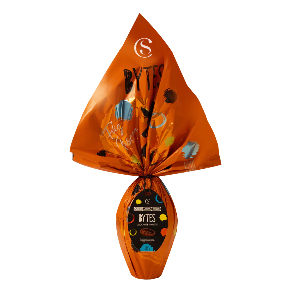 O Ovo de Páscoa Bytes ao Leite Crocante é a combinação perfeita de chocolate ao leite cremoso e crocância irresistível. Com flocos de arroz crocantes nas cascas e drageados crocantes no interior, este ovo traz uma explosão de texturas que encantam a cada mordida.